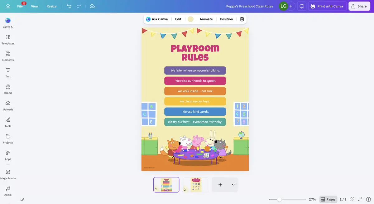 Canva has been extending its offering beyond basic template design through a mix of content partnerships, workplace tools and artificial intelligence features. In this case, users can customise the PEPPA PIG templates by changing text and colours, then share or print the finished design from within the platform.